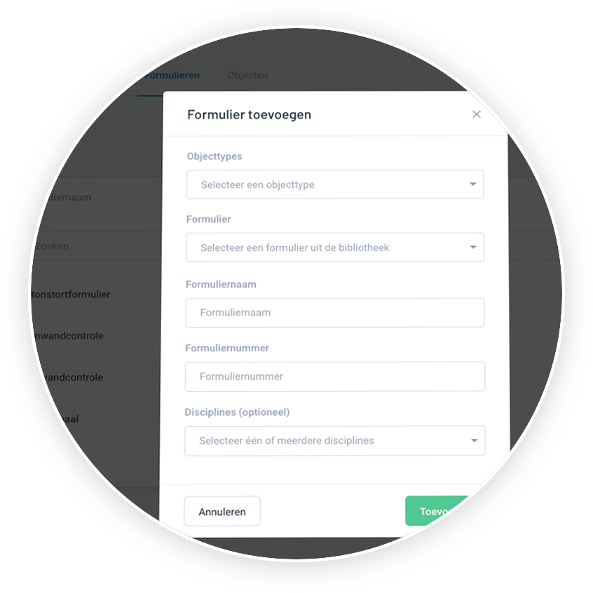 In de App worden opdrachten van projecten weergegeven die voor jou bestemd zijn. Vul tijdens een keuring, onderhoudstaak, inspectietaak of storing de formulieren in. Ingevulde formulieren worden automatisch verzonden naar de juiste locatie of personen. Houd bij of er nieuwe formulieren voor uitvoering zijn, neem een formulier over van een collega of voer een herkeuring uit.
